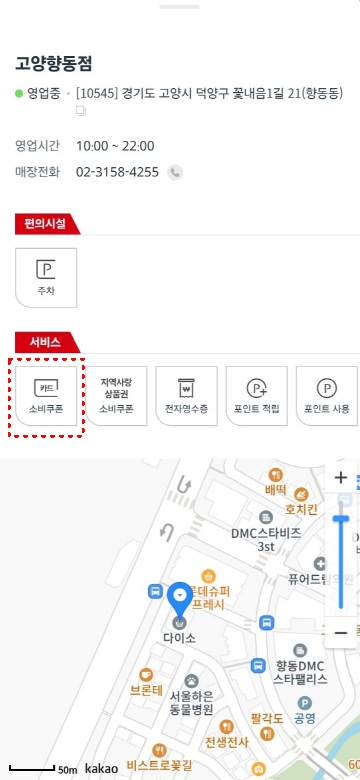 - ‘가맹점 찾기’ 또는 ‘사용처 찾기’ 메뉴 클릭