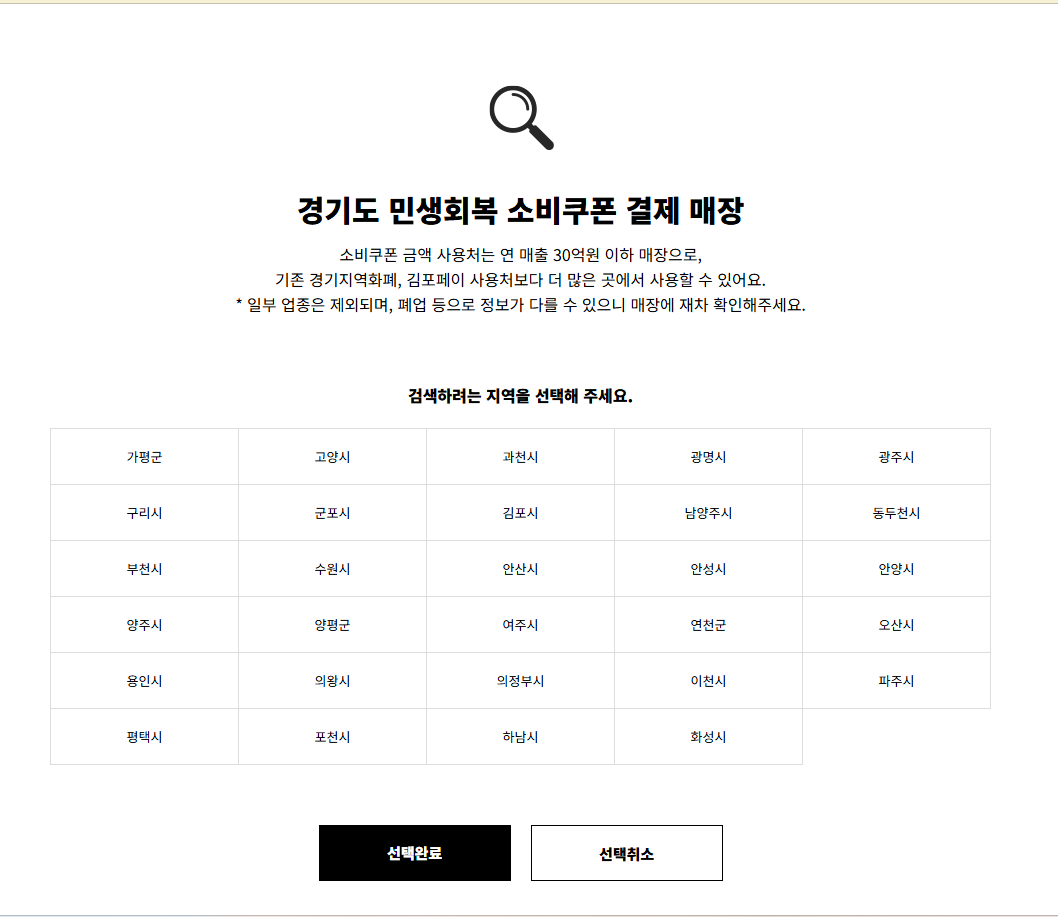 예: "서울 민생회복 지원금 사용처", "수원 지역화폐 사용처 PDF"