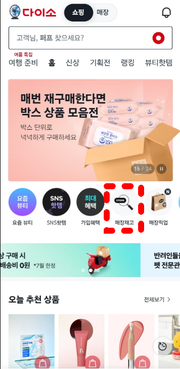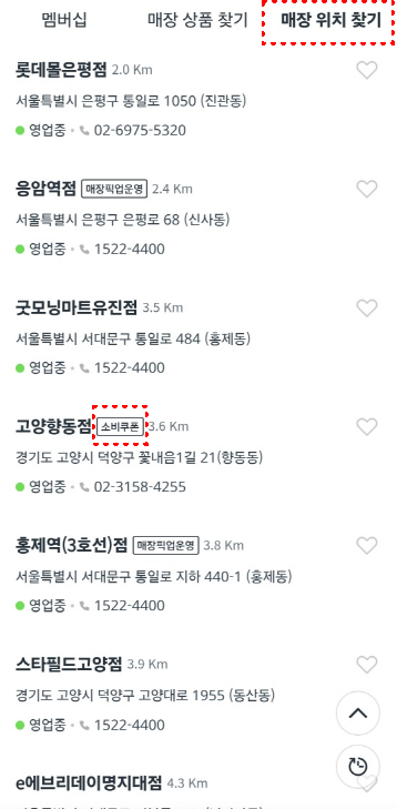 - 위치 기반 검색 or 상호 검색 (예: "다이소", "올리브영")